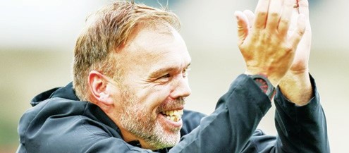 MARCHING ON: Tamworth savour beating Macclesfield to reach the FA Cup first round proper PUMP IT UP: Harborough’s Ben Stephens celebrates...