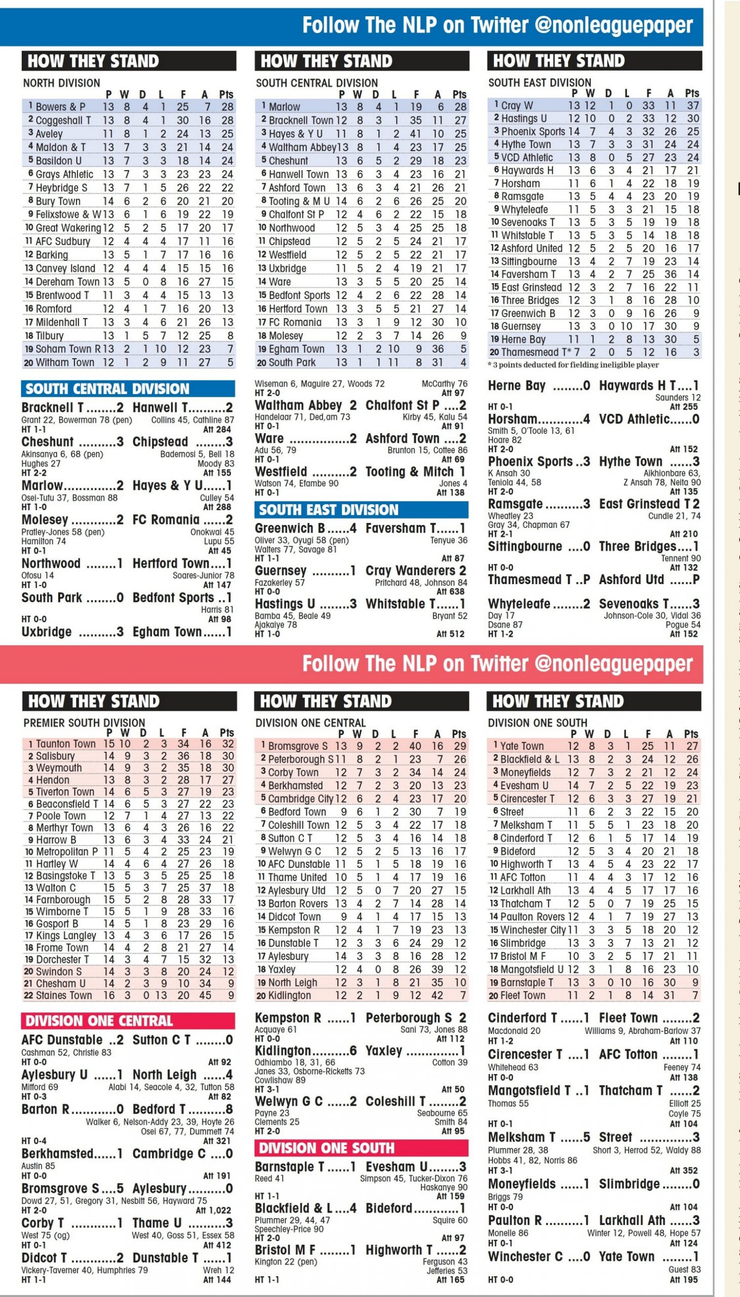 DIV 1 SOUTH ROUND-UP By Gary Collinson A STELLAR second-half effort from Bideford earned them an impressive 2-1 win over high-flying...