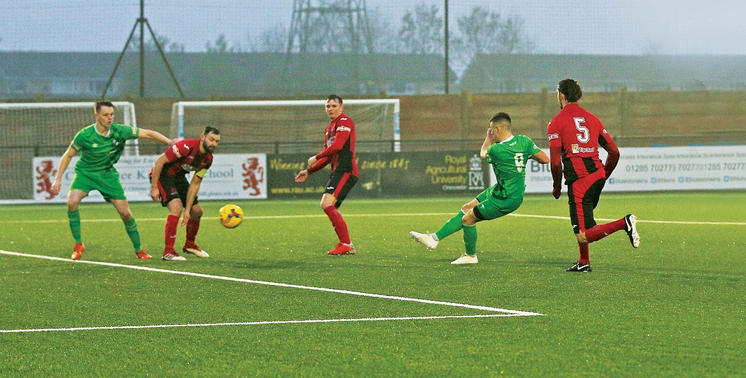 By Tony Croft CIRENCESTER TOWN 2 BLACKFIELD & L 3 CLEAN HIT: Oliver Dennett scores the winning goal to make it...