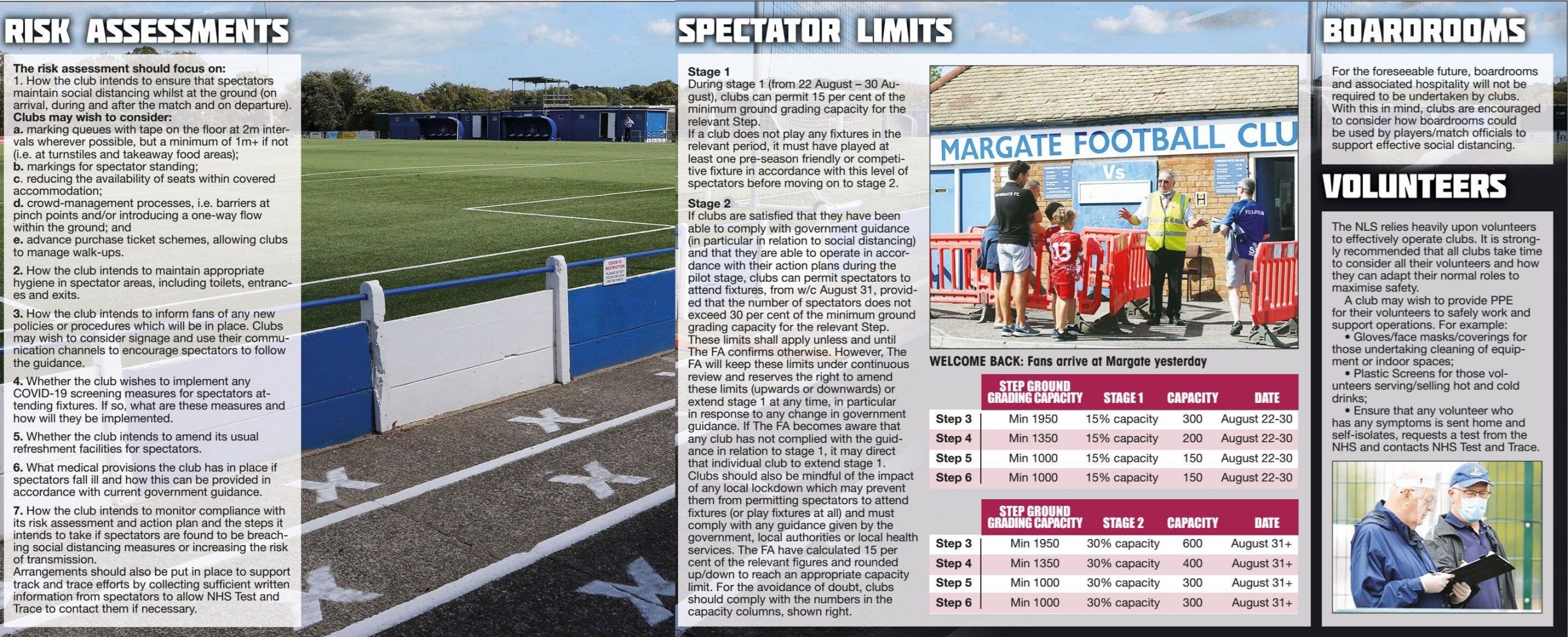 By MATT BADCOCK FANS RETURN SOCIAL DISTANCING, one-way systems, hand sanitiser and NHS Test & Trace will quickly become familiar in...