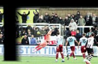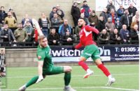 By Terry Spracklen DORCHESTER TOWN 1 Daws 28 TAUNTON TOWN 1 Brain 17 NET GAINS: Taunton keeper Josh Gould is beaten...
