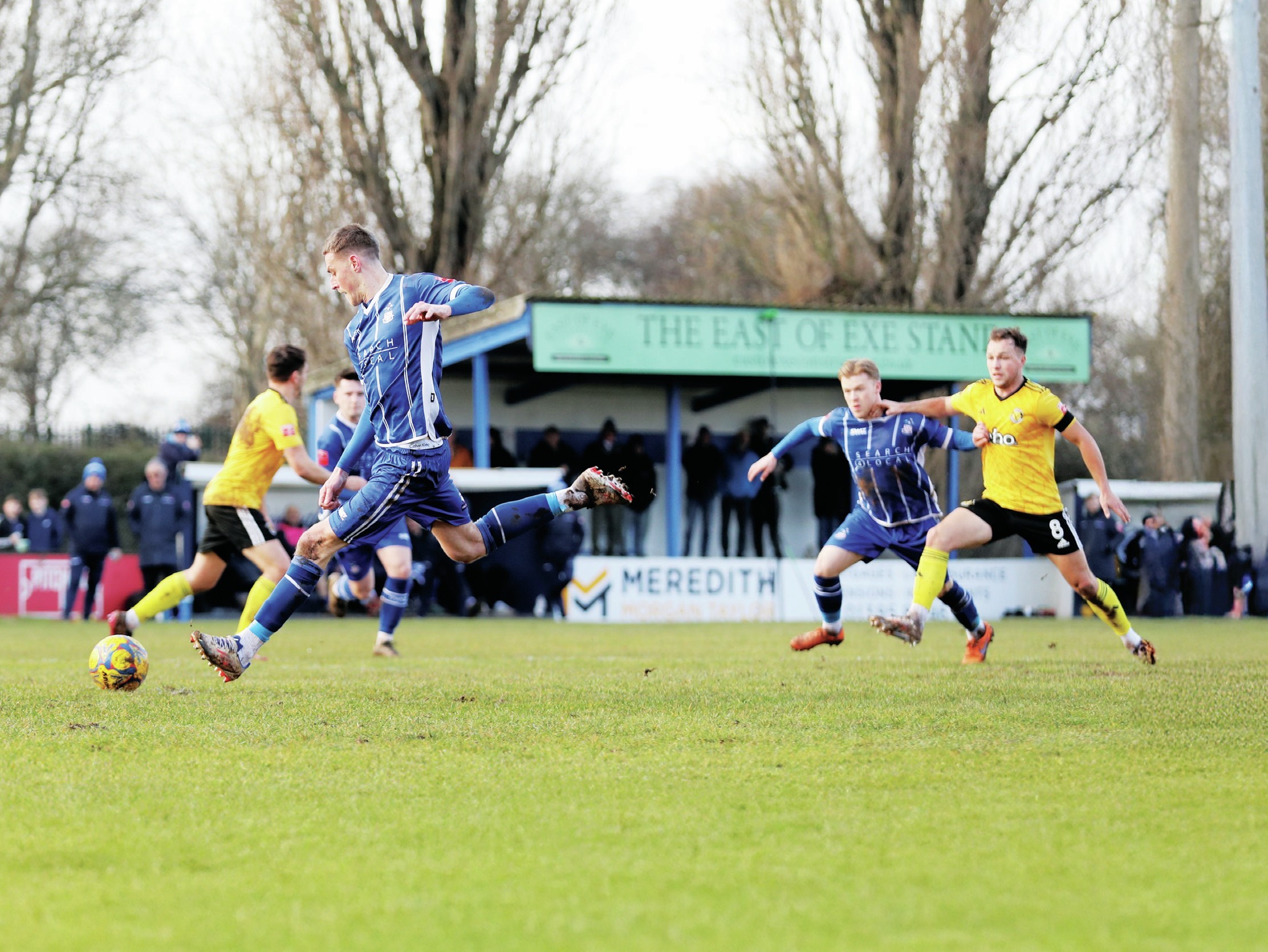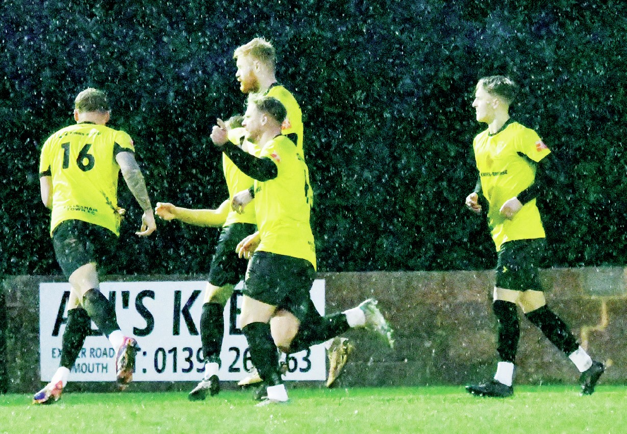 DIV 1 SOUTH By John Dibsdall ■ MATTHEW Wright’s brace secured the points for Exmouth Town. Both sides deserve credit for...