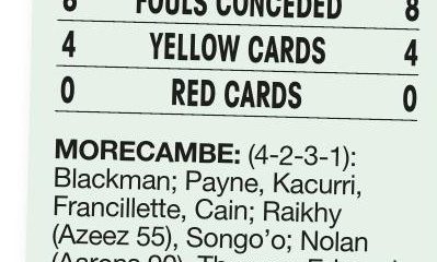 By Derek Quinn MORECAMBE 1 Edwards 21 CHESTER 1 Shrimpton 90+5 A DRAMATIC 94thminute strike from substitute Fin Shrimpton earned Chester...