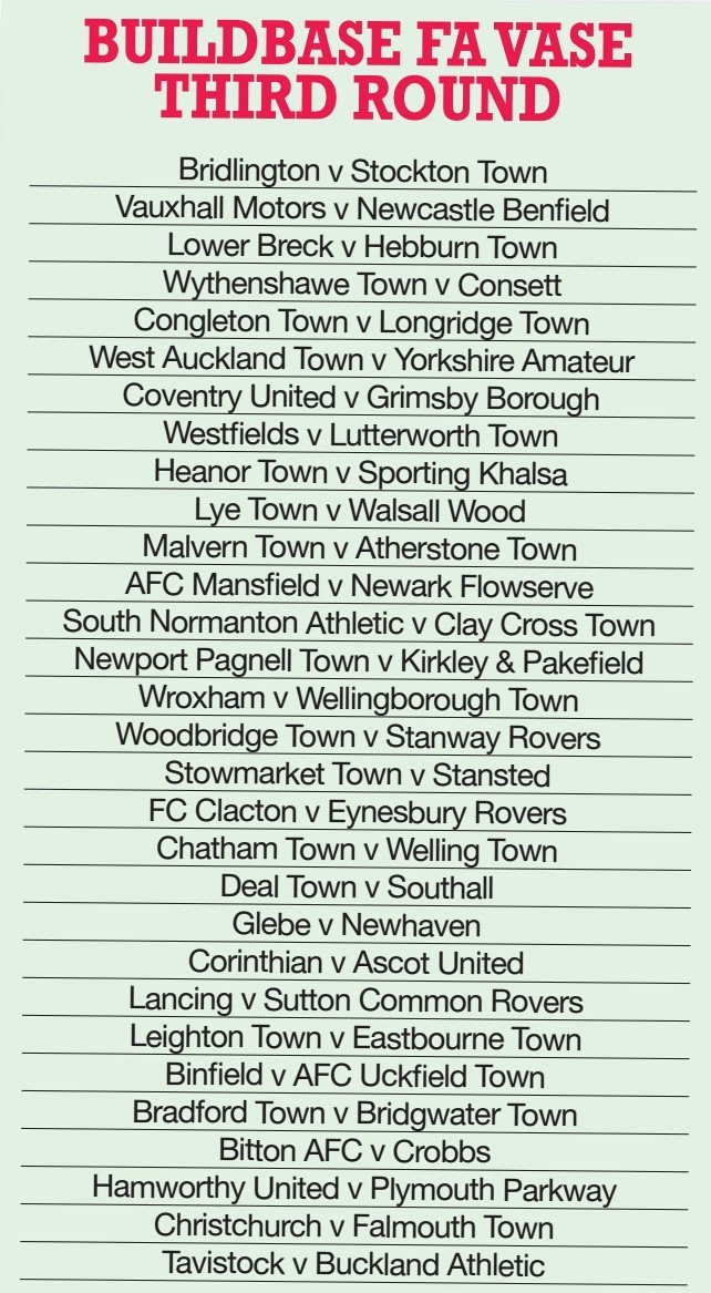 ROUND-UP By Tom Cunningham FOLLOWING a week of frustrating postponements, the FA Vase finally took centre stage once again, with just...