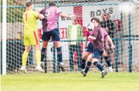 CORINTHIAN-CASUALS 1 WHITSTABLE TOWN 4 By Michael Grimes IT’S THERE: Josh Oliver, No.7, heads home Whitstable Town’s equaliser PICTURE: Stuart Tree...