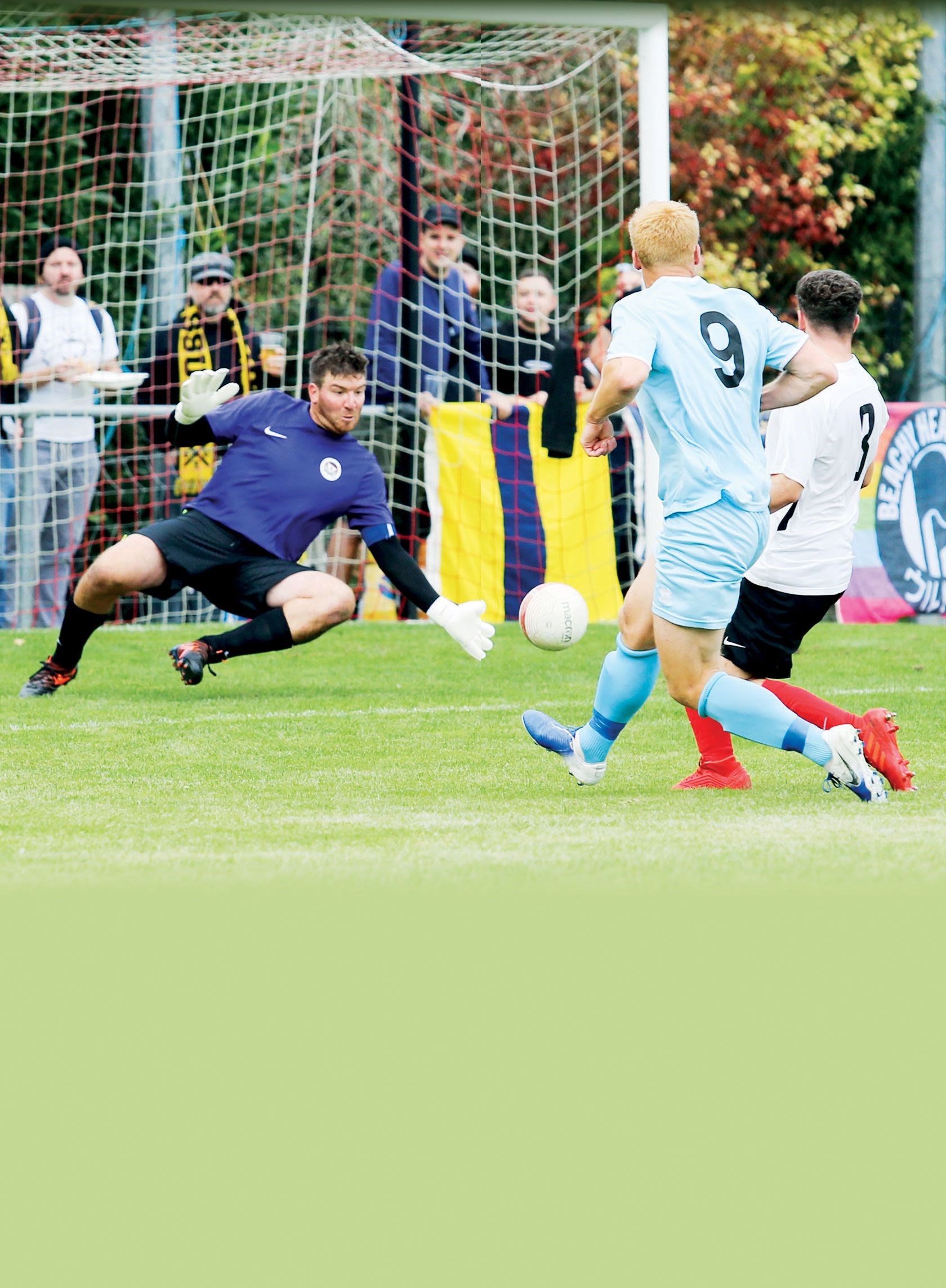Lancers and Lions hit first day sixes By Rory Hayward SMART STOP: Horsham YMCA keeper Aaron Jeal saves from Eastbourne Town’s...