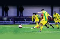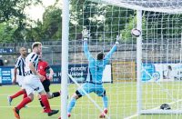By Alan Jones CHANCE: Hyde’s Harry Coates blasts a free header over the bar with the score at 2-0 PICTURE: ShutterPress...