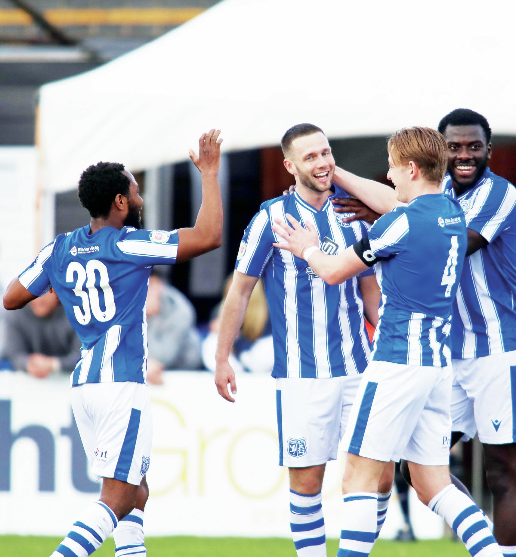ESSEX SENIOR LEAGUE By David Ballheimer LUKE AT US GO! Luke Hirst takes the congratrulations from his Enfield FC teammates after...