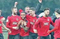 COMBINED COUNTIES LEAGUE PLAY-OFFS By Matthew Nash SPOT ON: Cobham players can’t hide their delight after winning their penalty shootout against...