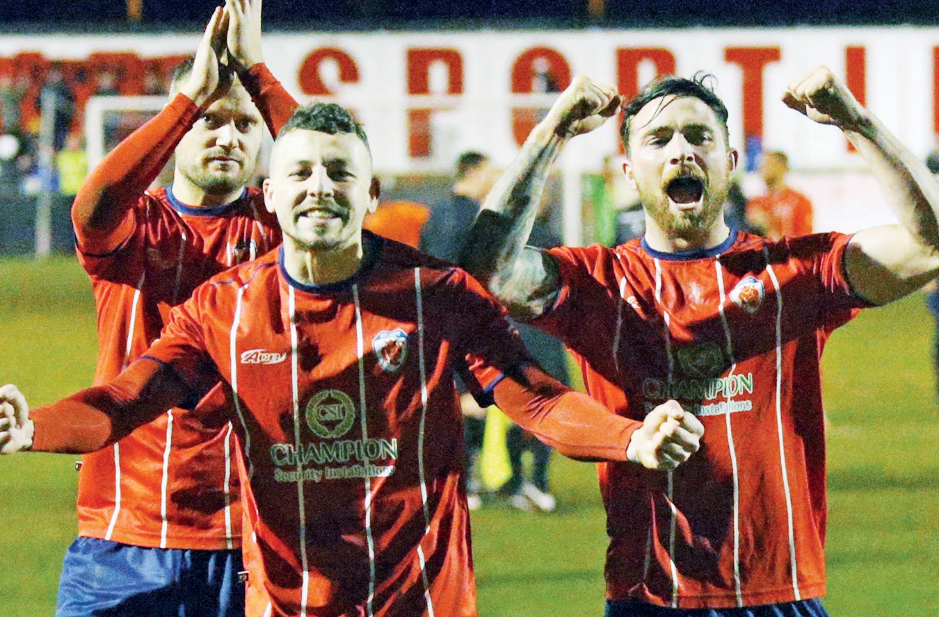 By David Richardson Rouslers chasing promotion No.4 TOP GUNS! Bromsgrove’s players celebrate going top of the league after the match against...