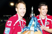 SIMON RUSK By DAVID RICHARDSON TROPHY SUCCESS: Simon Rusk, left, lifts the Conference trophy with Crawley Town teammate Glenn Wilson, and...