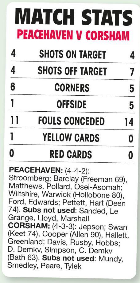 By Freddie Humphry-Wakefield PEACEHAVEN 1 Pettett 90 CORSHAM TOWN 1 Bath 64 Corsham Town won 3-2 on pens DESPITE scoring a...