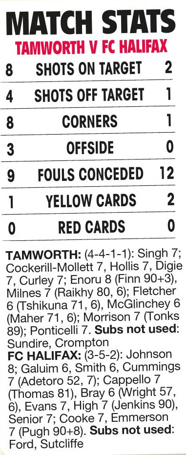 By Dave Clayton TAMWORTH 1 BOSTON UNITED 1 TAMWORTH WON 5-4 ON PENS TAMWORTH squeezed into the FA Trophy fourth round...