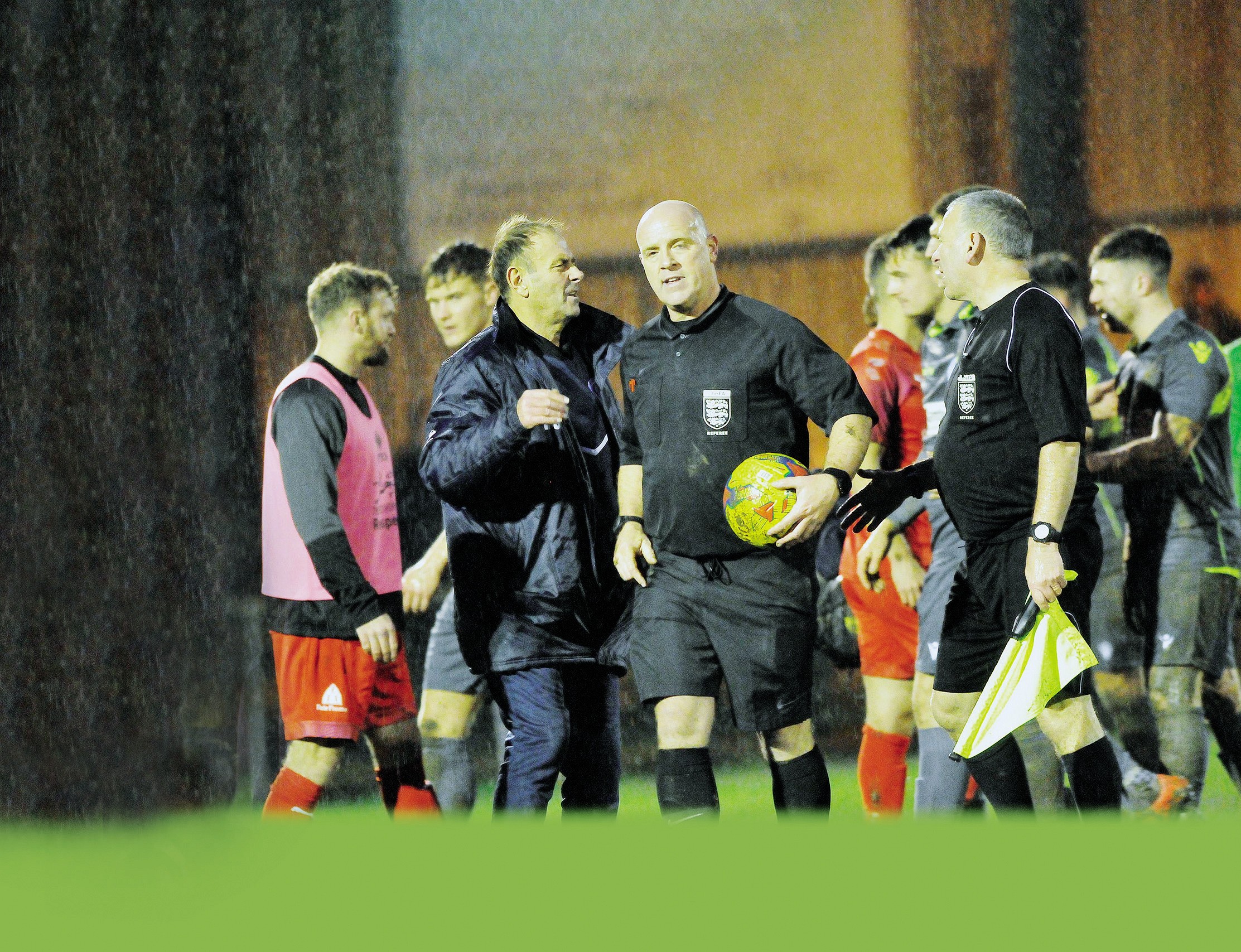DIV 1 SOUTH By Thomas Williams KEY MAN: Referee Martin Underhay calls off the game after Frome had taken the lead...