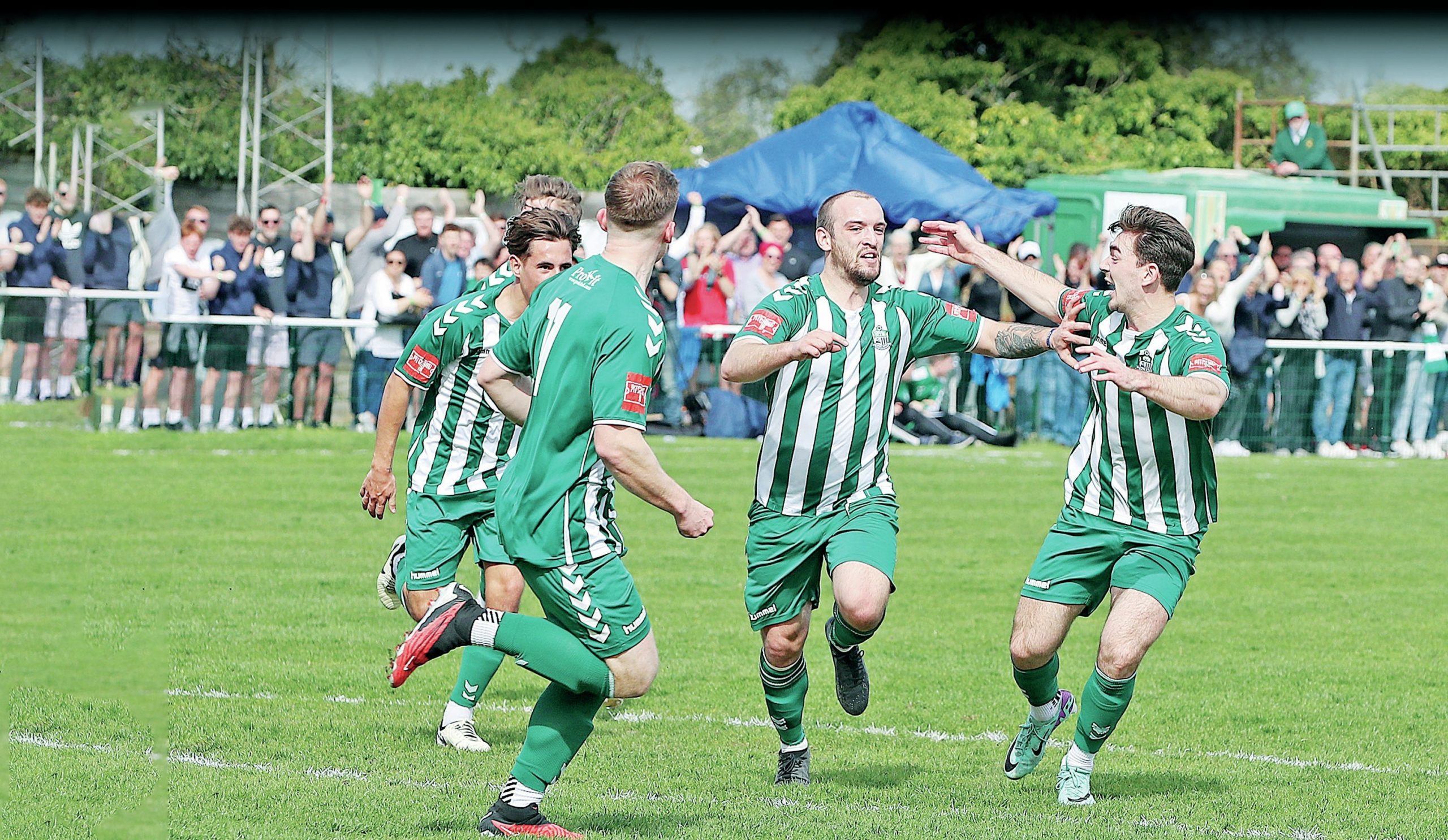 NORTH By Jim Purtill THAT’S A WRAP: Deese Kasinga-Madia celebrates Witham’s game-sealing goal and Andrew Sesay’s goes for goal, isnet top,...