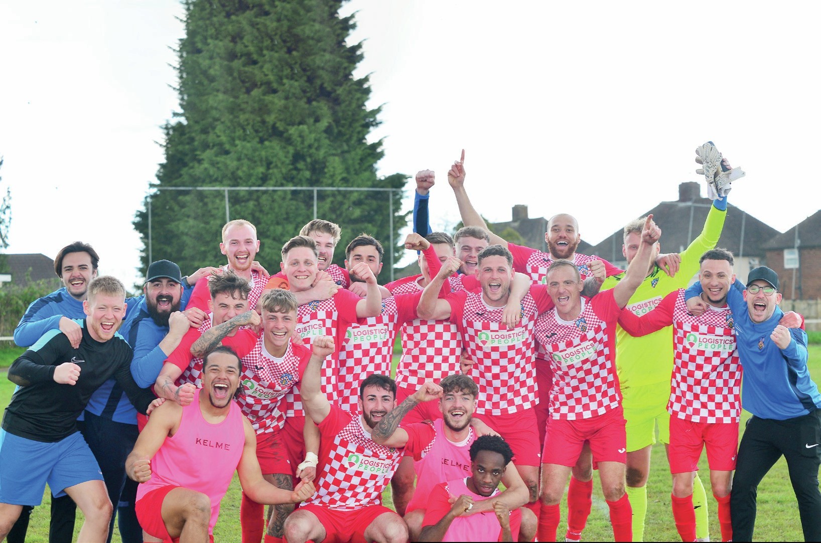 By Andrew Simpson BOURNE FREE: Bourne Town players and staff celebrate with fans after their win over Atherton LR PICTURE: Greig...