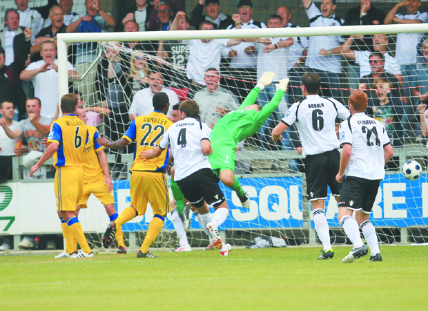 TRANMERE R 2 Stockton 13, C Jennings 24 ALDERSHOT T 2 McClure 4, Mensah 41 SILENCED: Aldershot’s Bernard Mensah, right, celebrates...