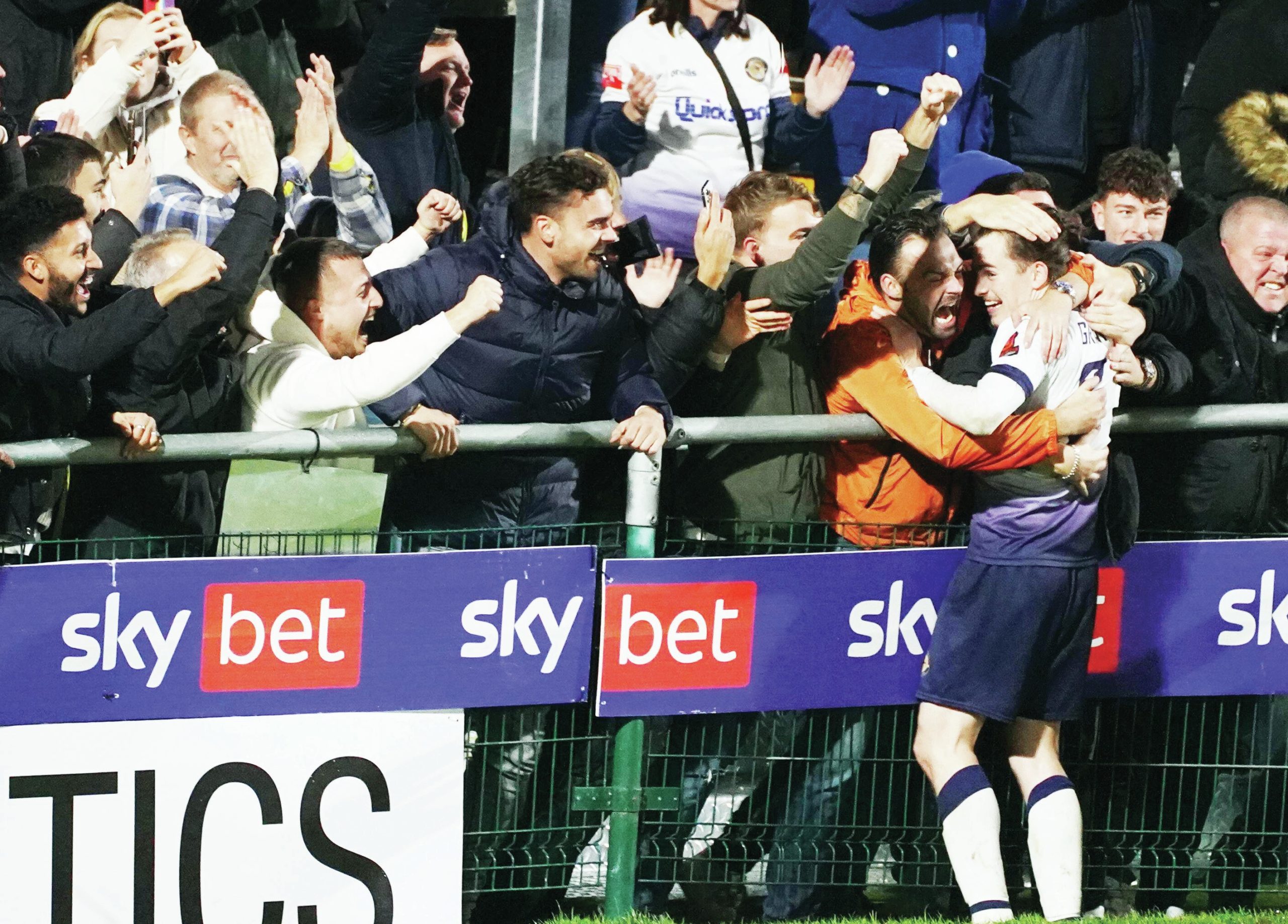 By Jon Couch WISH GRANT-ED: Farnborough fans celebrate with Freddie Grant after winning 2-0 at the Emirates FA Cup first round...