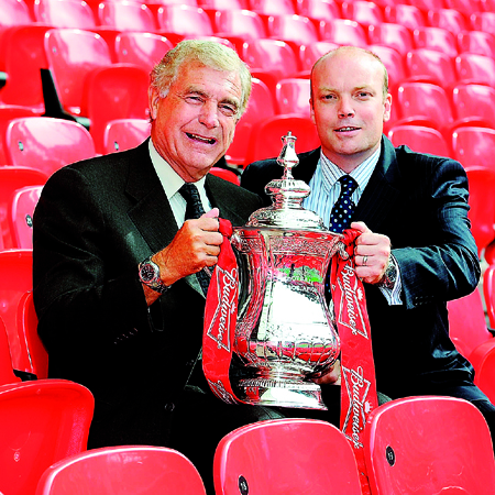 Above: Sir Trevor Brooking and Iain Newell, Budweiser European Marketing Director.